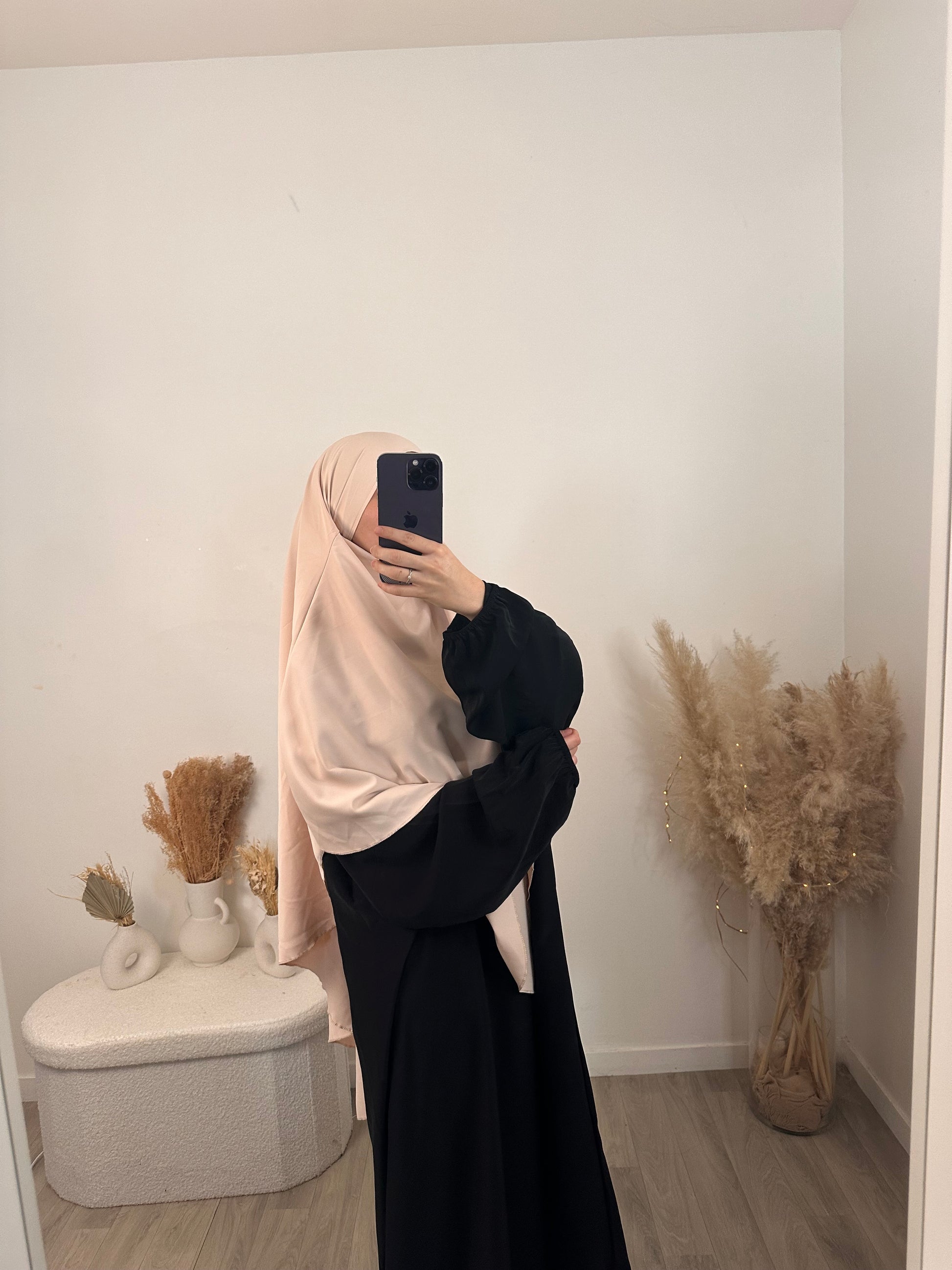 Robe basic en SOIE DE MEDINE, se porte aussi bien avec un KHIMAR ou un hijab en JERSEY PREMIUM.
